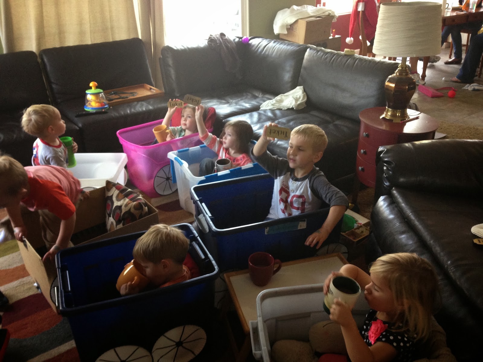 I saw a picture online of a friend who had attended a play group for her son. The picture was him in a train car watching the movie The Polar Express. As soon as I saw it I knew I had to do the same sort of thing with our group of friends. This week we had friends over for a lunch playdate where we had pizza before hopping into our train cars for the movie.